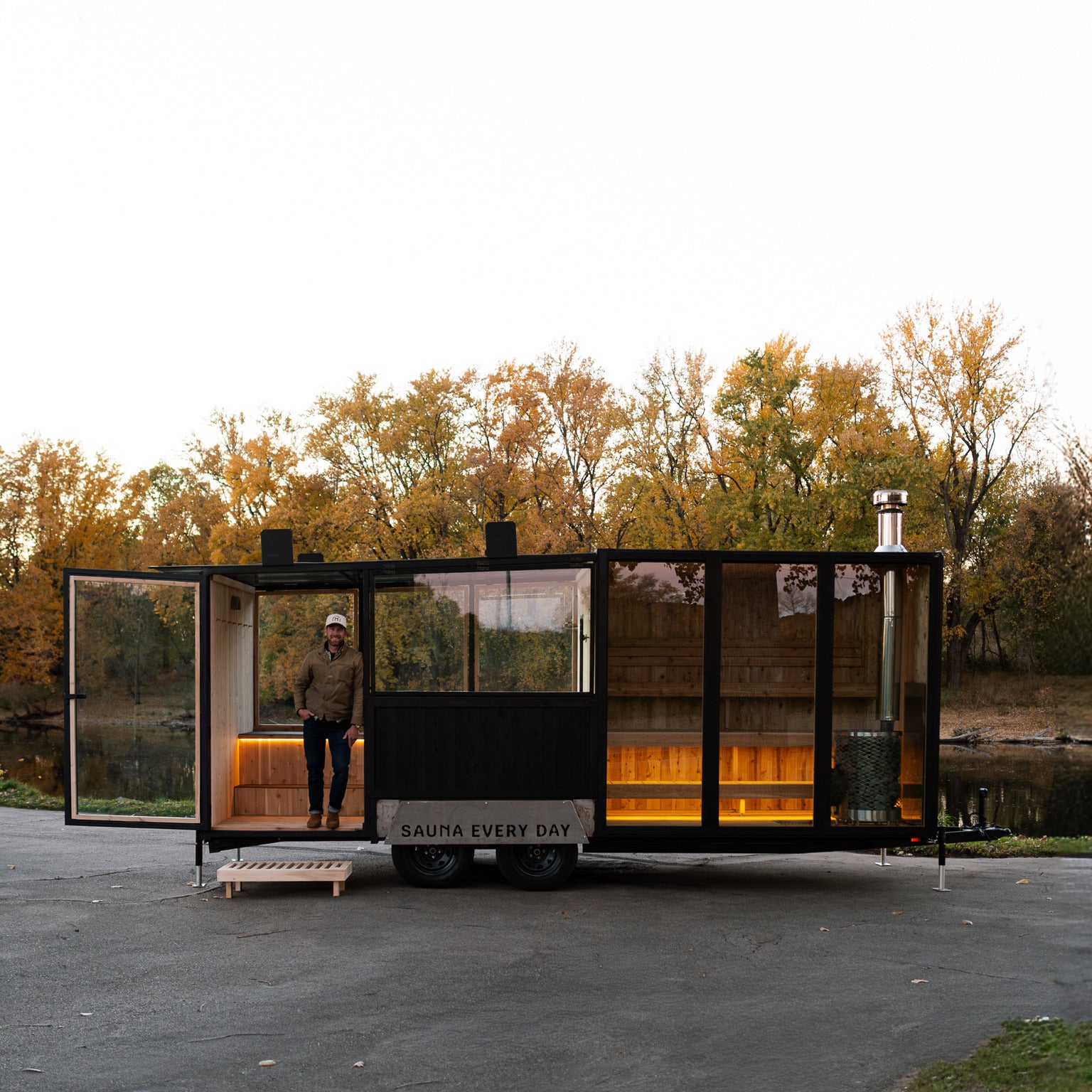 This is not a sauna trailer. This is a one-of-a-kind mobile wellness experience—a sculptural masterpiece that brings authentic Sauna culture wherever the road takes you.